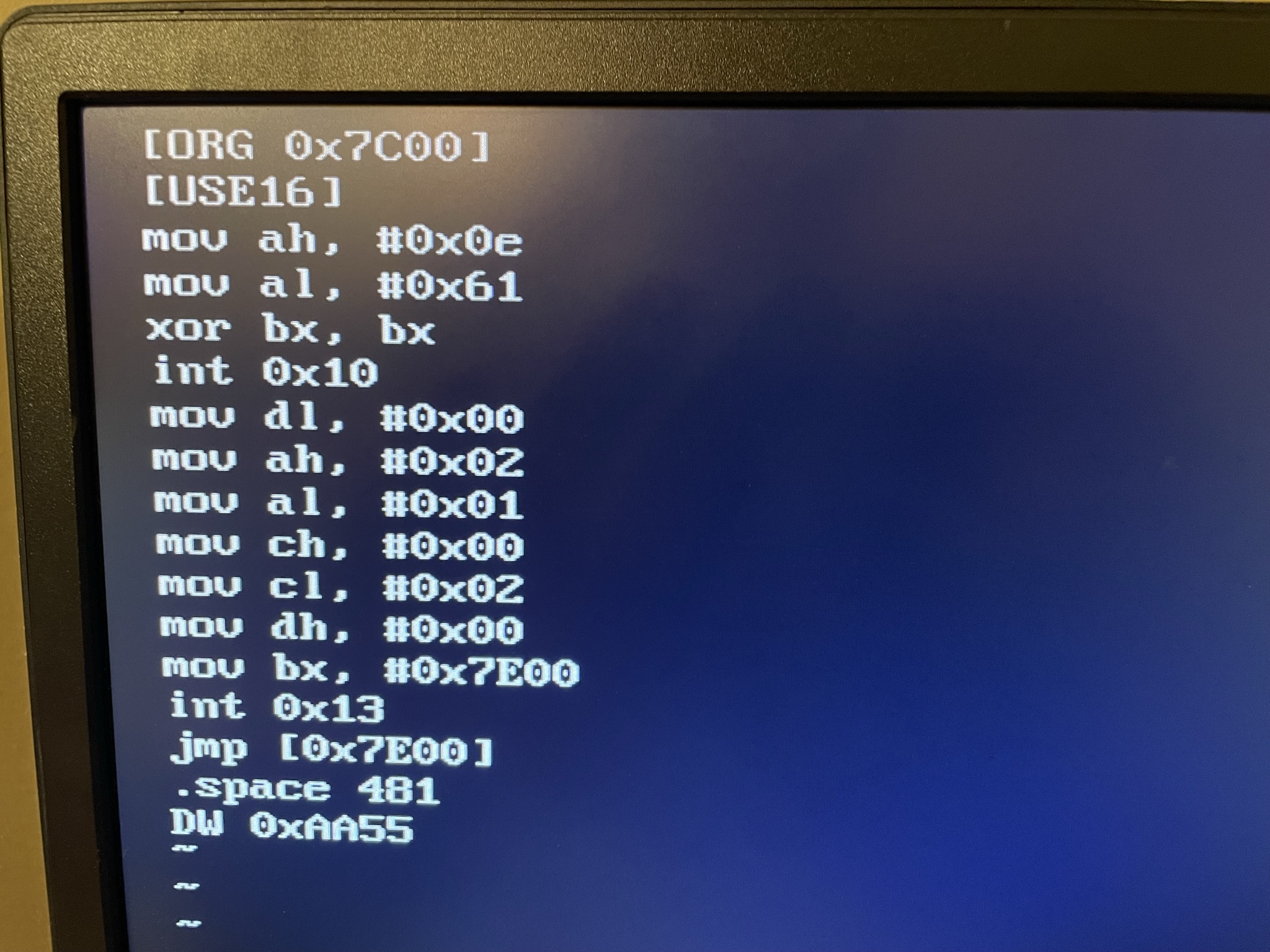 I've created a stage-1 bootloader here that doesn't focus on any aspect or conveniences of modern bootloaders outside of it makes a call to read from a floppy diskette at a specific sector, to save that sector of code into a memory address then perform a non-returning jump to that memory address. Bootloader Code